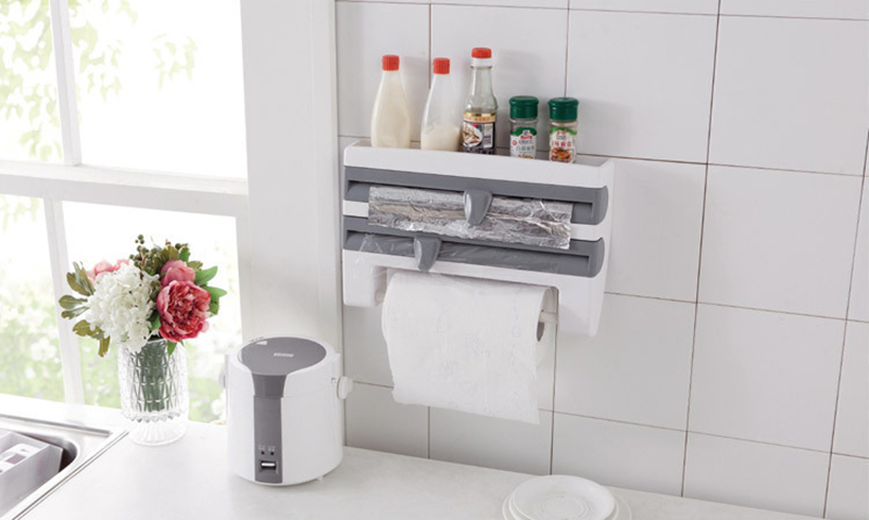 4-In-1 Kitchen Roll Holder Dispenser Kitchen Foil Film Wrap Tissue Paper 4 IN 1 Kitchen Roll Holder Dispenser